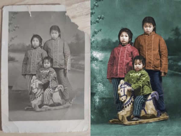 老照片修复,就是针对各种类型的旧损照片,通过计算机技术进行修复,包括扫描褪色、残损照片或胶片,调整暗调/高光以改善面效果,修正曝光斑痕,利用曲线调整图层进行局部遮光和局部额外曝光,扫描并修护曝光过度的照片,最终达到完美无缺的图片。